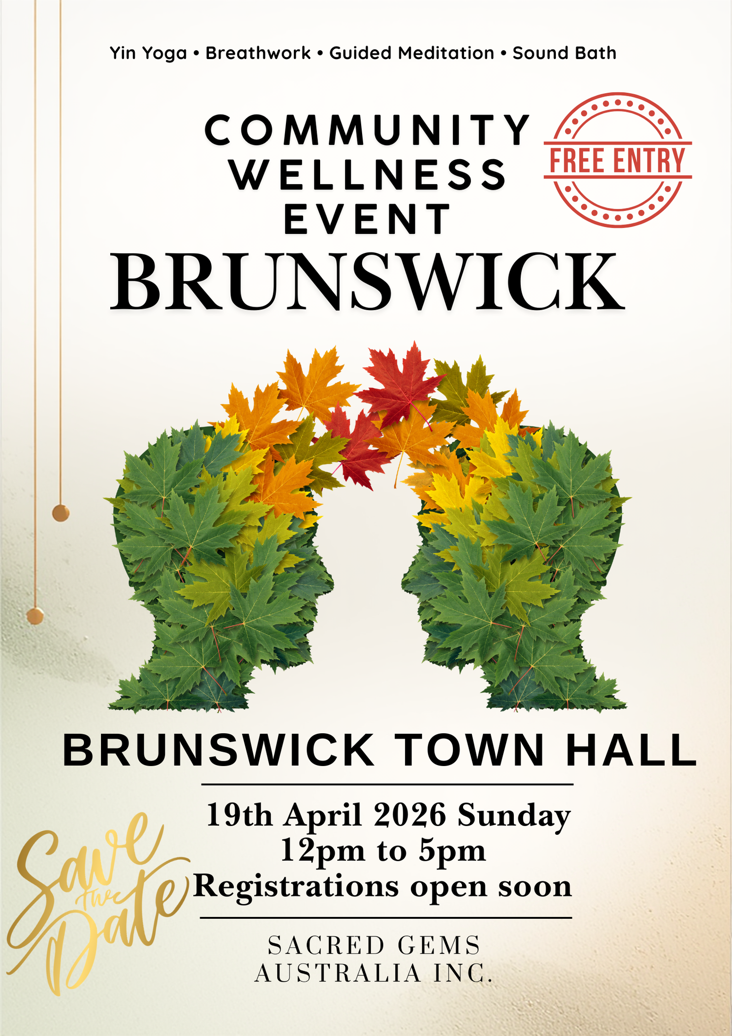 Sacred Gems Australia Inc presents the Community Wellness Gathering 2026, a free mental health and wellbeing event at Brunswick Town Hall on Sunday, 19 April 2026, from 12:00pm to 5:00pm. Created to support nervous system regulation, emotional resilience, and real community connection, this gathering offers a safe, inclusive space where people can feel seen, supported, and gently guided back to themselves.