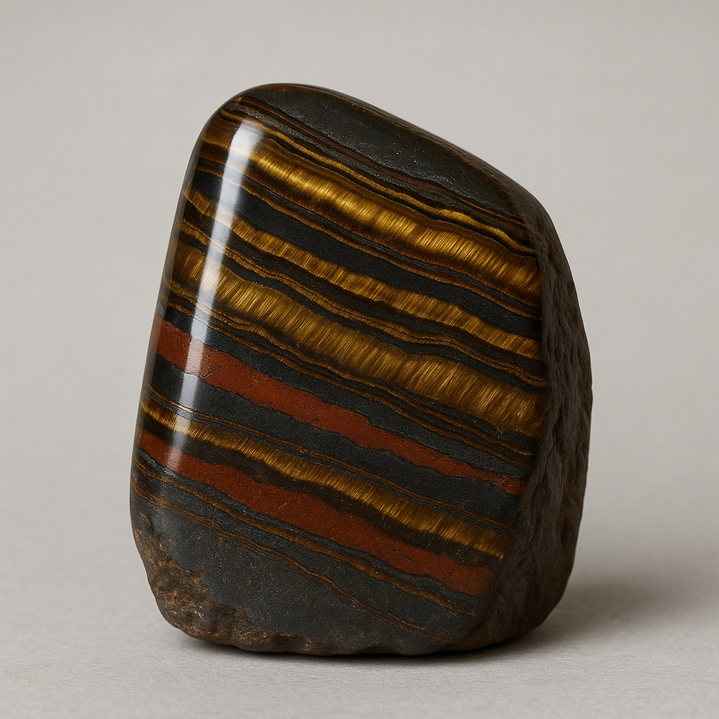 While Tiger Iron as a named blend is modern in commerce, its parents have deep lineages. Tiger Eye has long symbolised alert calm—the watchful golden stripe that sees both risk and opportunity. Red Jasper is the hearth-stone of endurance, honoured in many traditions for its association with blood, soil, and honest labour. Hematite carries iron’s gravitas and the reflective truth of a polished mirror—showing what is, not what we wish it to be. When these strata fuse in nature, a narrative appears: courage guided by coherence, desire tempered by duty, and warmth housed inside dependable structure.