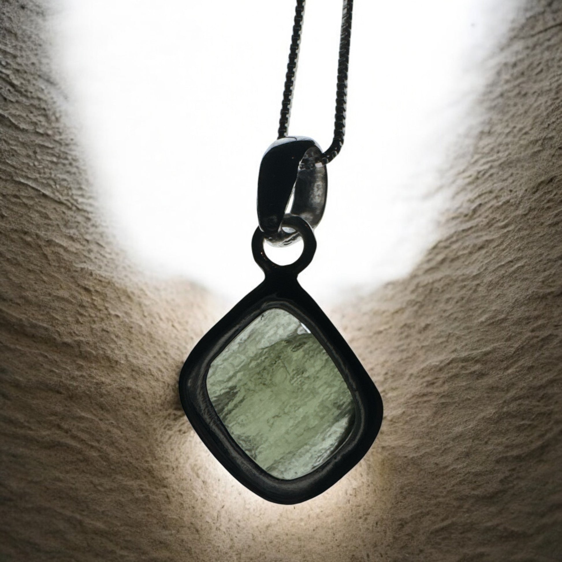 Moldavite 925 Silver Pendant – Rare Tektite for Transformation & Spiritual Acceleration