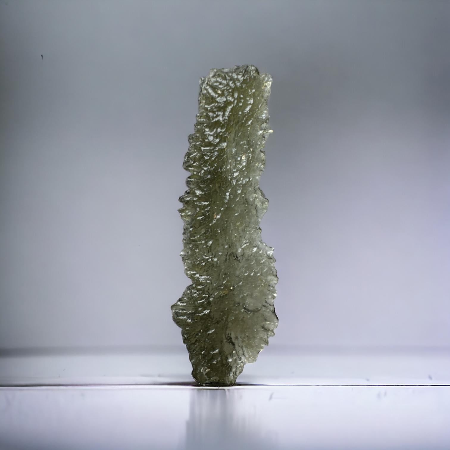 Moldavite, a unique and captivating gemstone, holds a special place in the world of crystals and metaphysical lore. Formed by the intense heat and pressure of a meteorite impact over 15 million years ago, Moldavite is a rare form of tektite found mainly in the Czech Republic and southern Germany regions. Its distinct olive-green colour and textured surface, resembling a fusion of glass and rough stone, make Moldavite easily distinguishable. Legend has it that the impact's energy imbued Moldavite with powerful transformative properties, making it a cherished stone for those seeking spiritual evolution and personal growth.