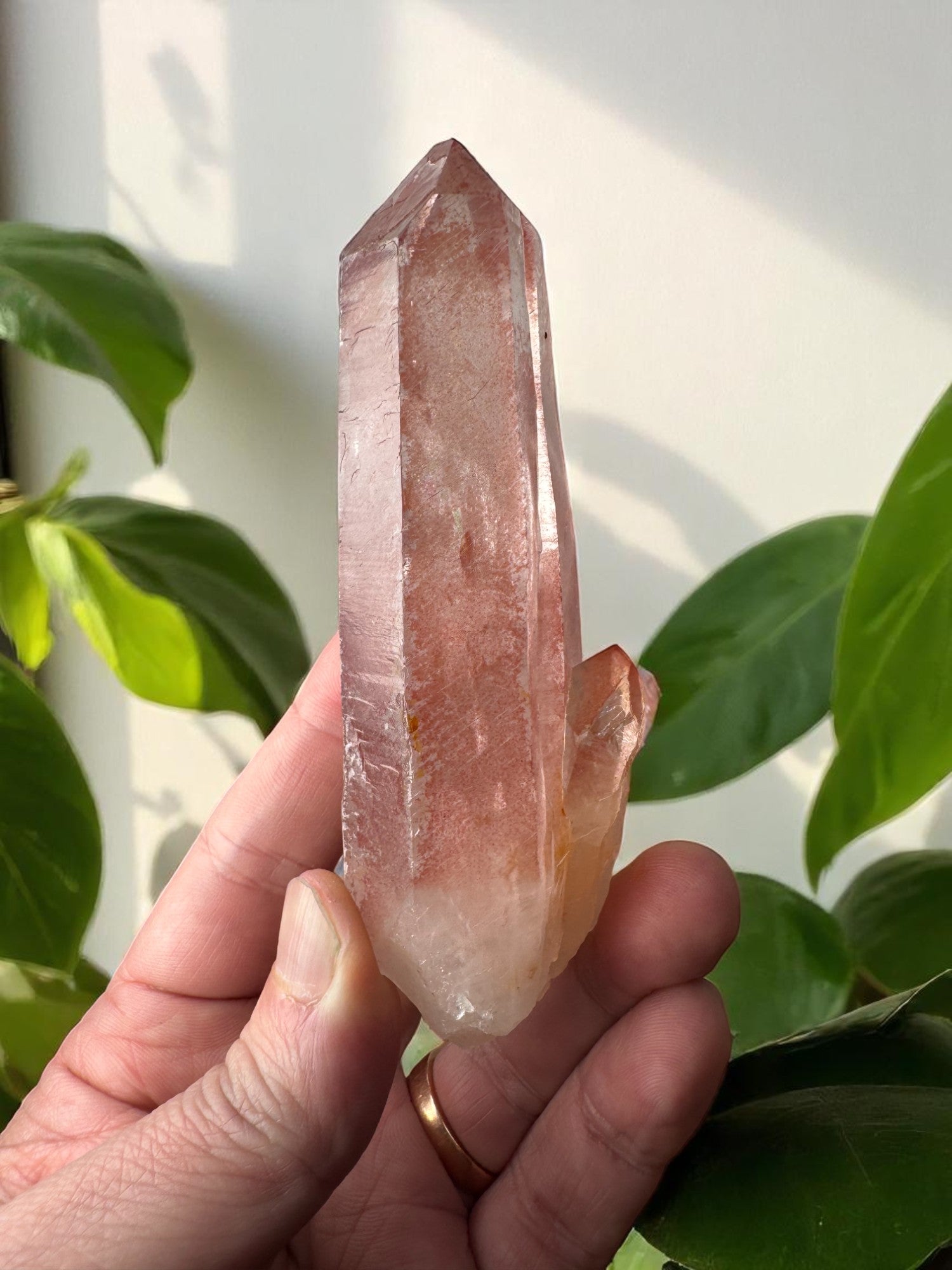 Step into the sanctuary of ancient Lemuria with this exquisite Scarlet Temple Pink Lemurian Quartz. These extraordinary crystals are believed to hold the sacred codes of divine love, higher consciousness, and spiritual awakening. Recognisable by their radiant pink hue and unique horizontal striations, they are rare treasures known to connect directly to the heart and crown chakras.